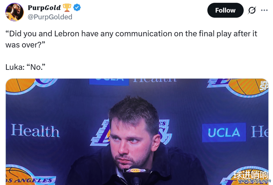 最后被问及赛后是否有和詹姆斯沟通时,东契奇明确表示:“没有。”