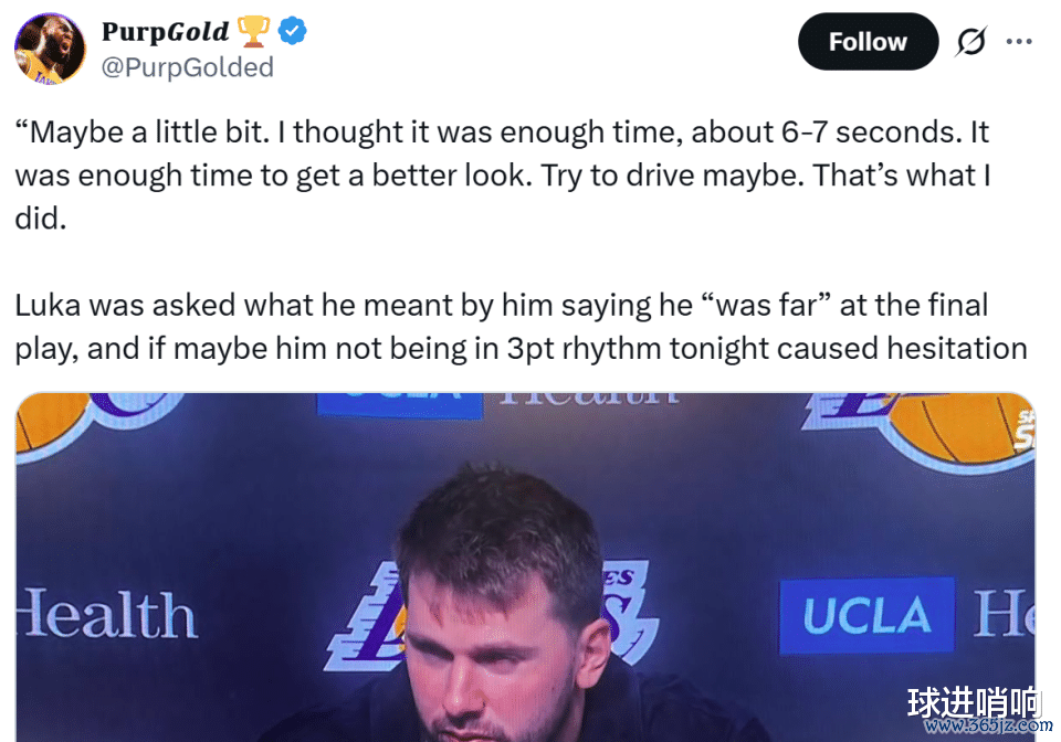 当被追问是否因为手感不佳而没有出手时,东契奇表示“可能的确有一点,我当时觉得时间还够,还能找到更好的机会,比如尝试突破,这就是当时自己那么做的原因。”