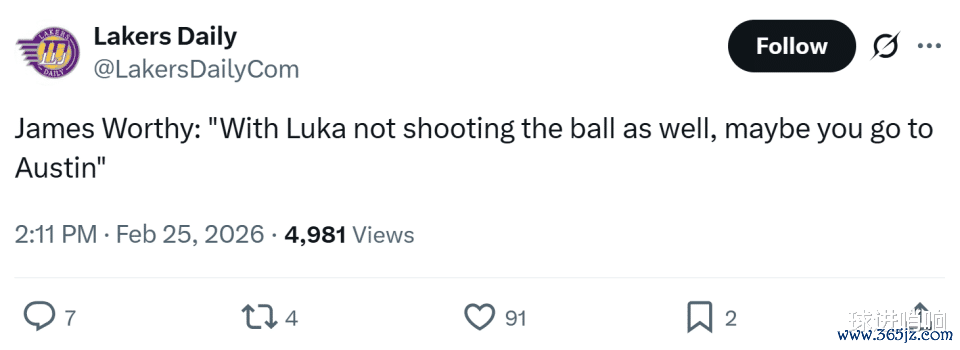 湖人名宿沃西也给出相同说法:“如果东契奇投射状态不佳,或许湖人可以考虑让里夫斯投绝杀球。”