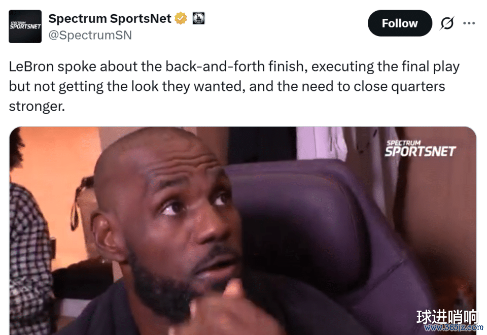 詹姆斯被问到最后一攻是否执行战术,球队是否得到想要的出手机会时。
