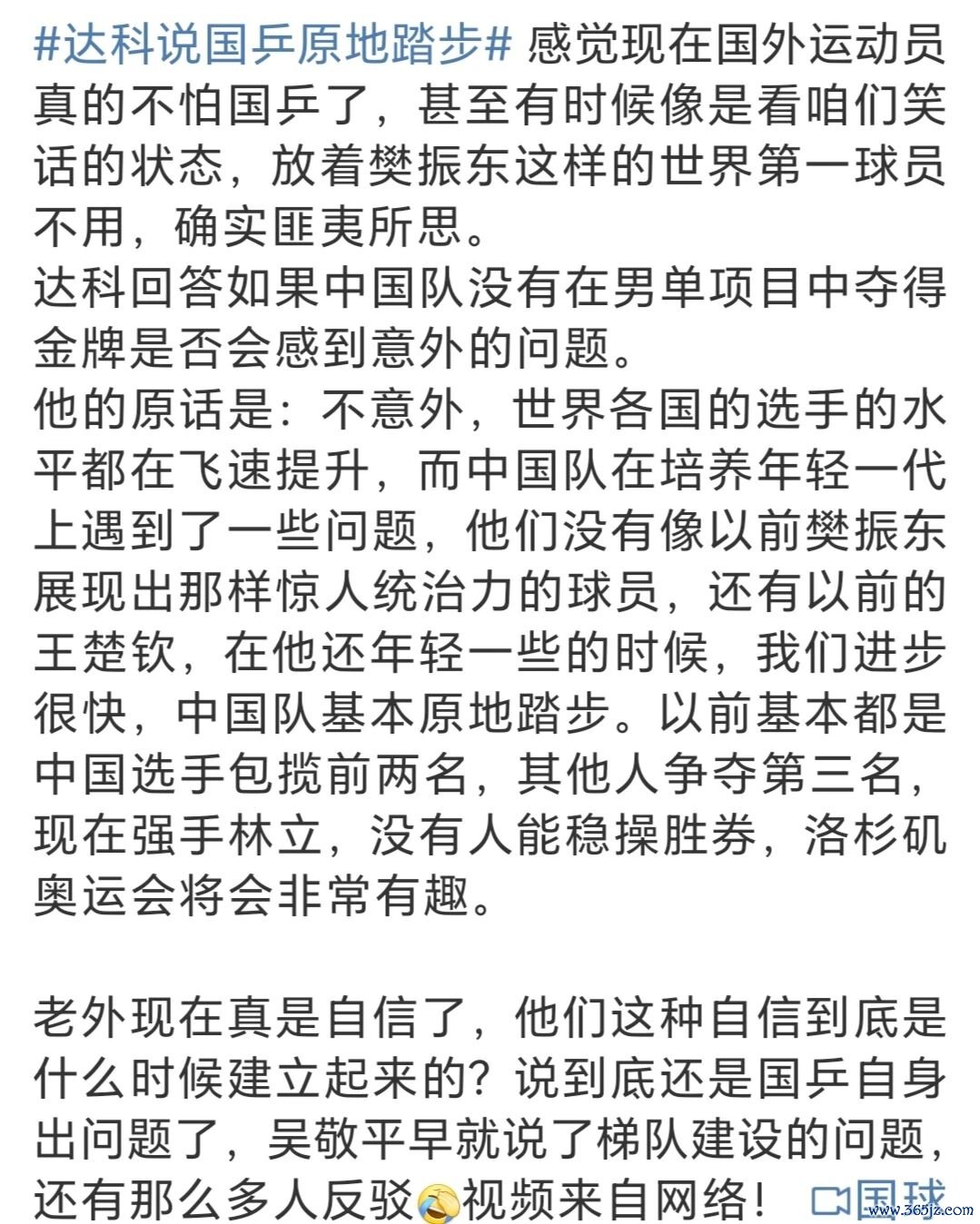 近日,欧洲乒坛名将斯洛文尼亚选手达科在采访中的一些言论,引发了网友们的讨论。