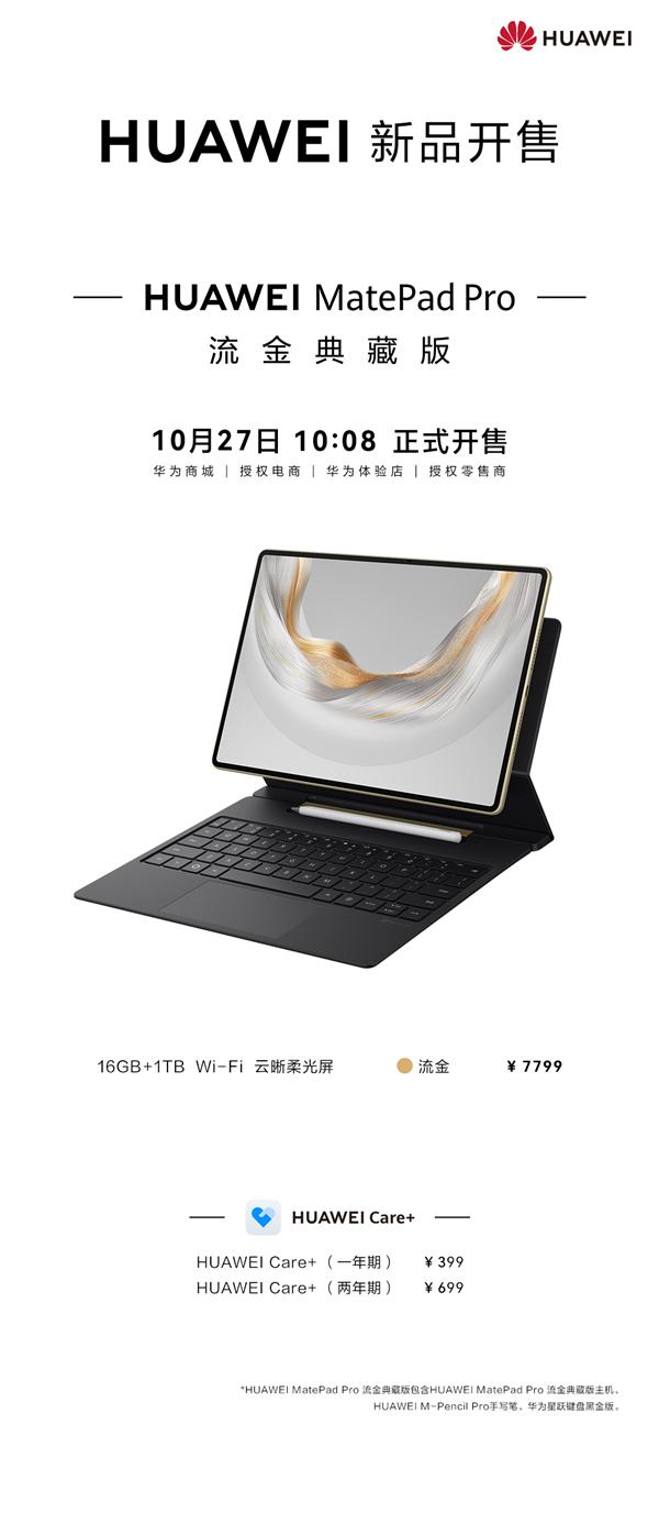 快科技10月27日消息,终端官方微博宣布,华为MatePad Pro 12.2英寸流金典藏版正式开卖大御优配,定价是7799元。